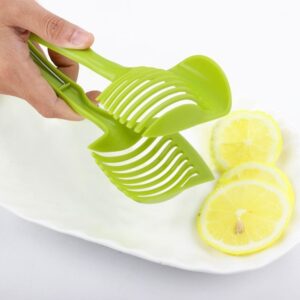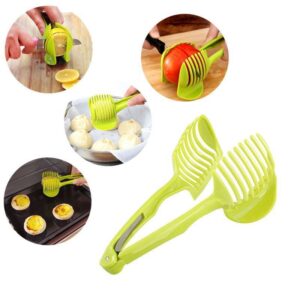 Praktický držák má speciální tvar a práce s ním je velmi snadná. Na konci držáku se nachází prostor, do kterého lze vložit kulaté ovoce nebo zeleninu. Nechte projít nůž drážkami a vytvořte tak stejně velké úhledné plátky.