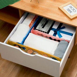Přepážka do zásuvky bude skvělým doplňkem do každé domácnosti. Její největší výhoda spočívá v tom, že udělá ve věcech pořádek! Přepážka má nastavitelnou délku, díky tomu jí lze přizpůsobit přesně podle vašeho šuplíku. Nejmenší délka je však 32 cm a největší délka je 55 cm. Výška přepážky je pak 8,8 cm. Přepážku lze použít do zásuvky se spodním prádlem, ponožkami, v kancelářském stole, v kuchyňských přihrádkách, ale také v šuplících s kosmetikou nebo jinými drobnostmi.