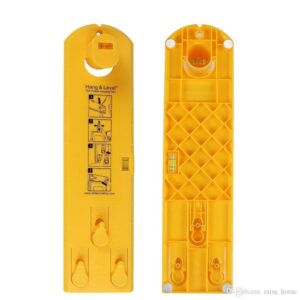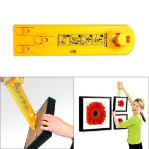 • Pomůcka označí díky kovovým hrotům místo pro hřebík –> zatlučení hřebíku/hřebíků na označené místo a pověšení obrazu/obrazů –> následné dorovnání obrazů díky vodováze na pomůcce